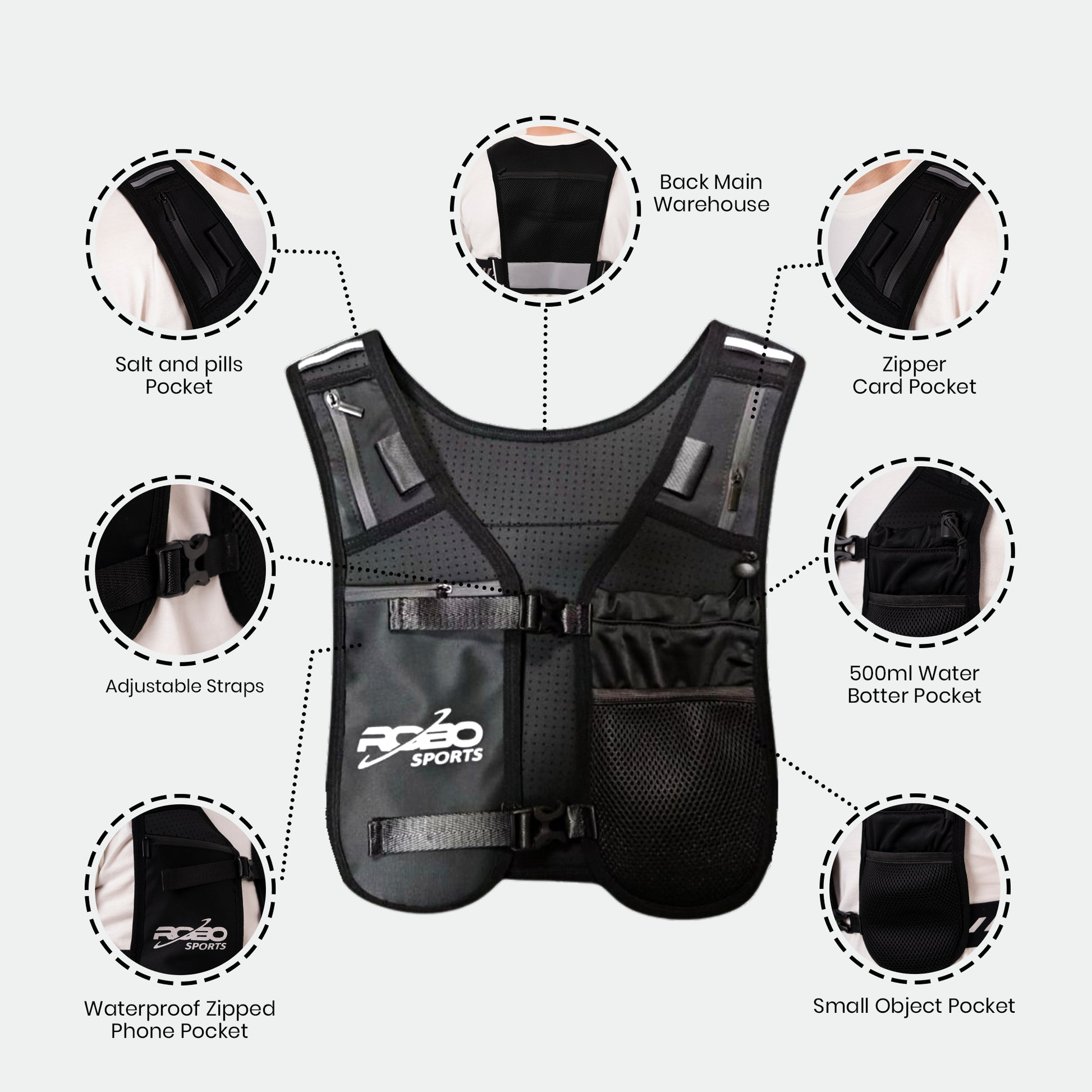 Upgrade your running experience with this lightweight and durable running vest, designed for comfort, visibility, and function. A smarter alternative to bulky backpacks, it includes essential gear like a water bottle and towel, plus multiple storage pockets to keep you moving without distraction.